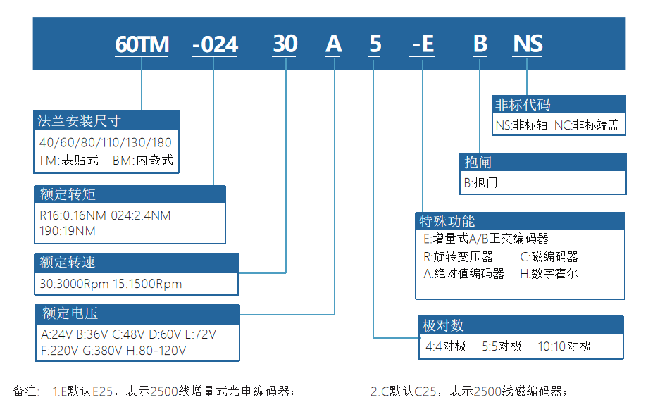 2. 額定轉(zhuǎn)矩(R16代表:0.16N.M 024代表:2.4N.M 190代表:19N.M)。