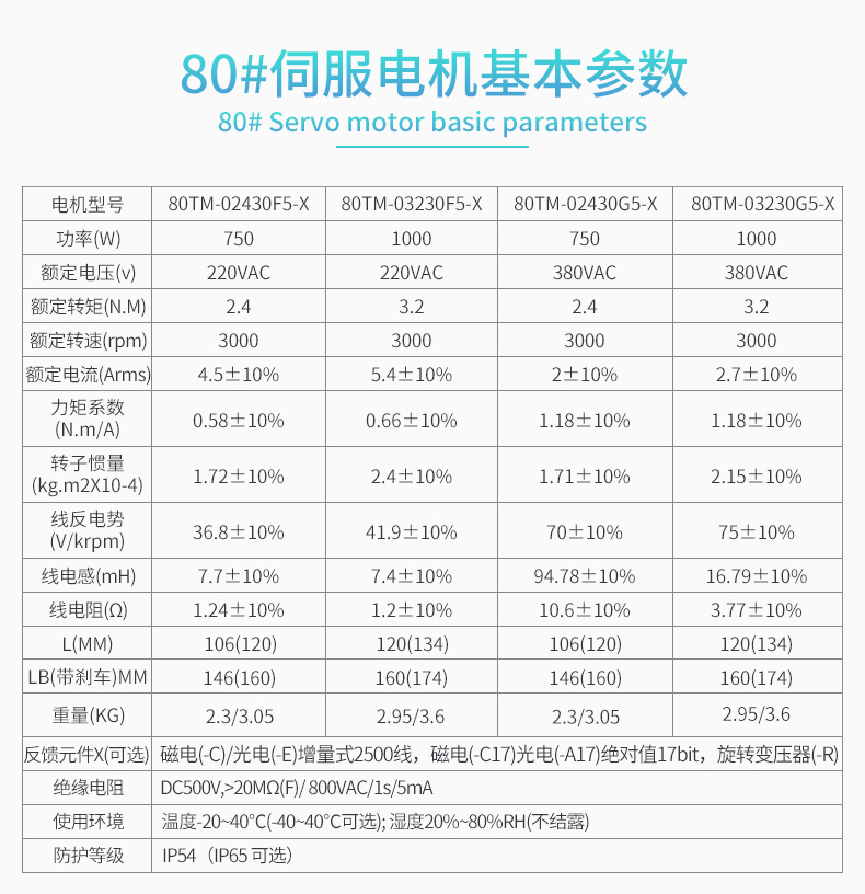 *電機(jī)種類多樣(750~1500W,110VAC,220VAC,380VAC,帶制動(dòng)器,油封等)