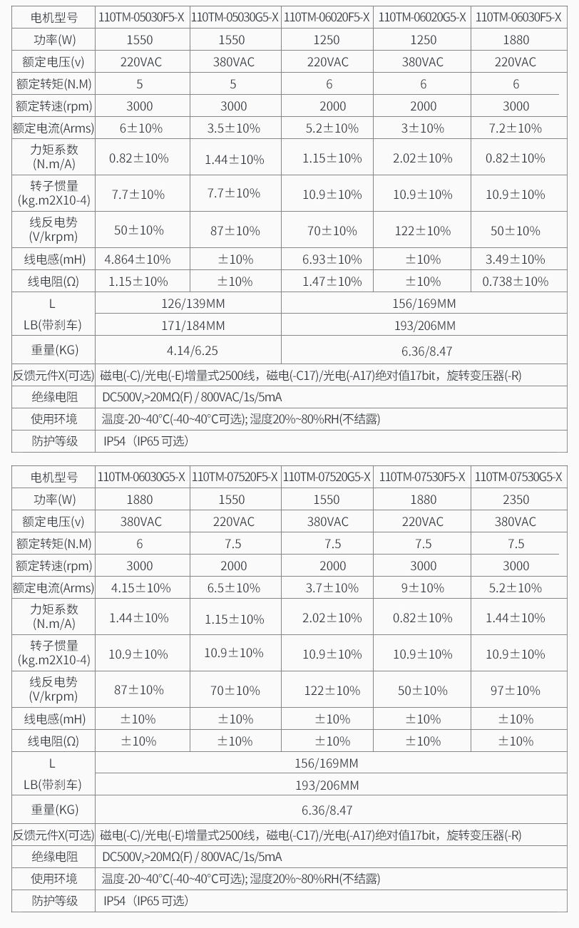 *電機種類多樣(1050~2350W,110VAC,220VAC,380VAC,帶制動器,油封等)