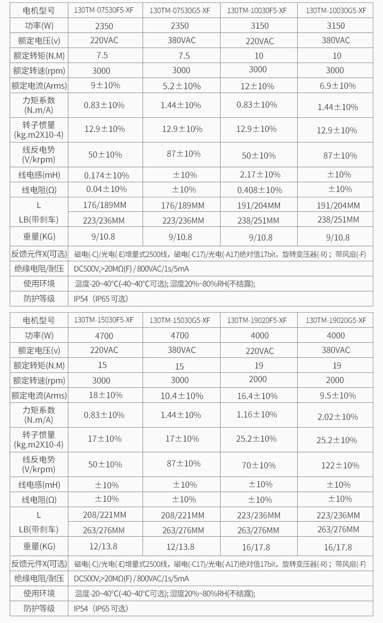 *電機(jī)種類多樣(1050~4000W,110VAC,220VAC,380VAC,帶制動器,油封等)