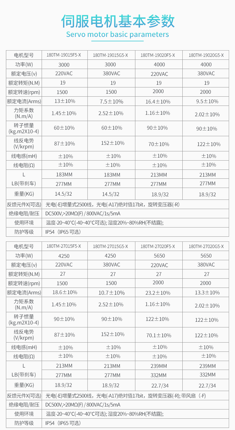 *電機(jī)種類多樣(2350~10000W,110VAC,220VAC,380VAC,帶制動(dòng)器,油封等)