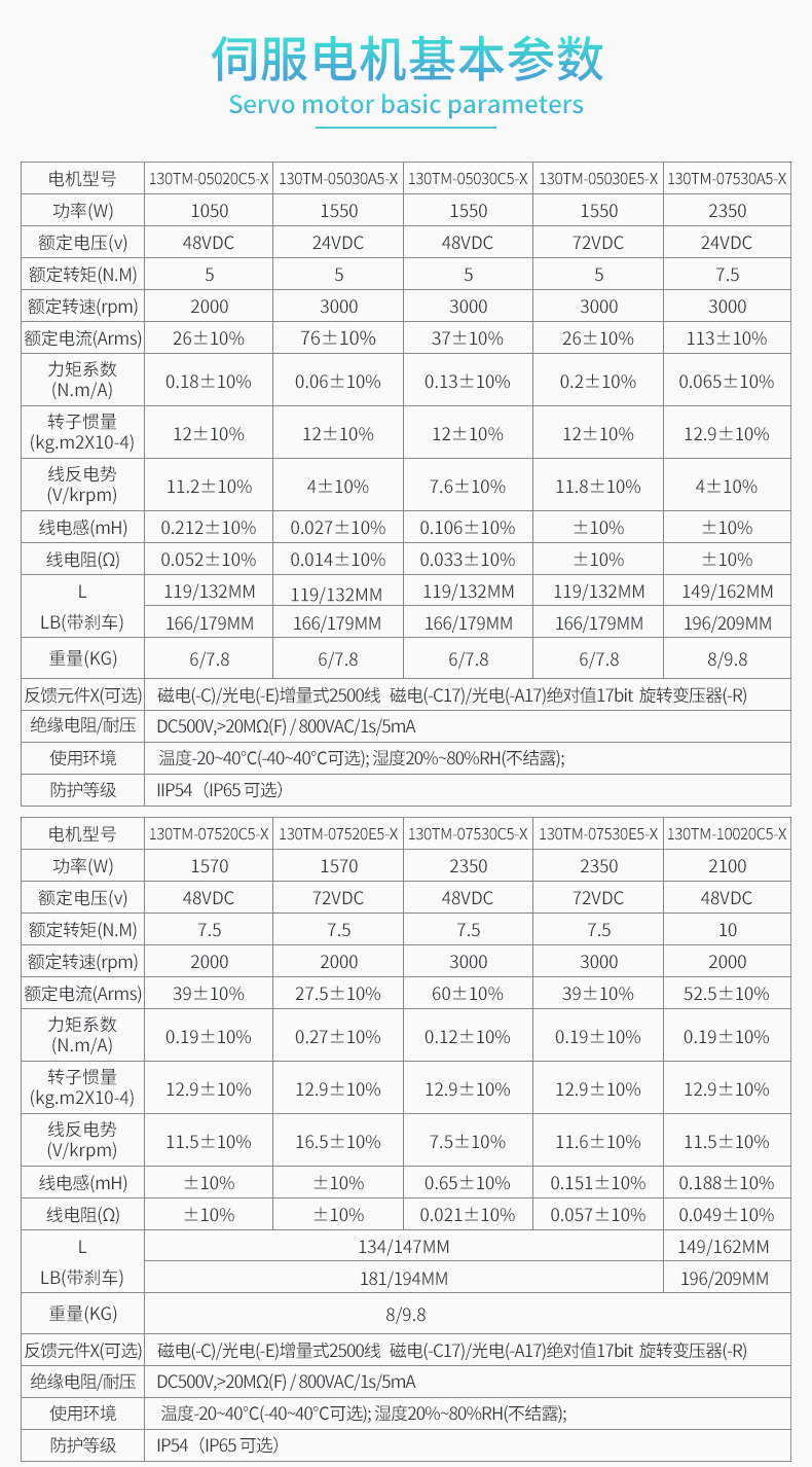*電機(jī)種類多樣(1050~5000W,DC24~144V,帶制動(dòng)器,油封等)